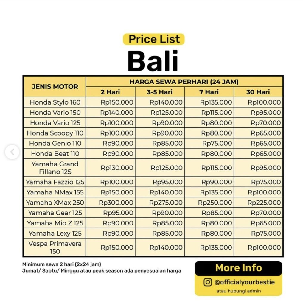 YourBestie menyediakan layanan sewa motor Bali dan rental motor Bali yang praktis, aman, dan terpercaya untuk kebutuhan wisata, kerja, maupun mobilitas harian. Dengan sistem booking online yang mudah, pilihan motor lengkap, serta harga transparan, YourBestie menjadi solusi terbaik untuk sewa motor di Bali tanpa ribet.